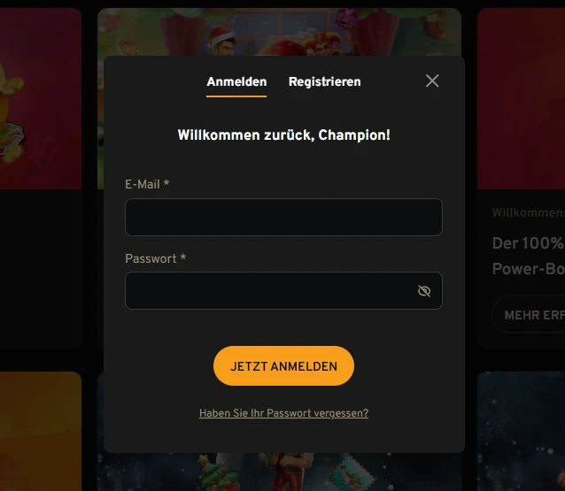 Der Zugriff auf Ihr LuckyTrunk Login ist schnell, sicher und speziell für deutsche Spieler mühelos gestaltet. Geben Sie einfach Ihre registrierte E-Mail und Ihr Passwort auf jedem Gerät ein. Da Ihre E-Mail Ihr Login-Benutzername ist, bleibt der Anmeldevorgang auf Desktop und mobil konsistent. Wenn Sie Ihr Passwort vergessen, können Sie es direkt über Login → „Passwort vergessen?“ zurücksetzen und in Minuten wieder spielen.