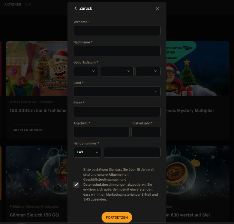 Deutsche Spieler sehen üblicherweise das lokale Telefonvorwahl-Format wie +49. Das Hinzufügen einer korrekten Mobilnummer unterstützt eine sichere Aktivierung und stellt sicher, dass Sie wichtige Kontobenachrichtigungen erhalten können.